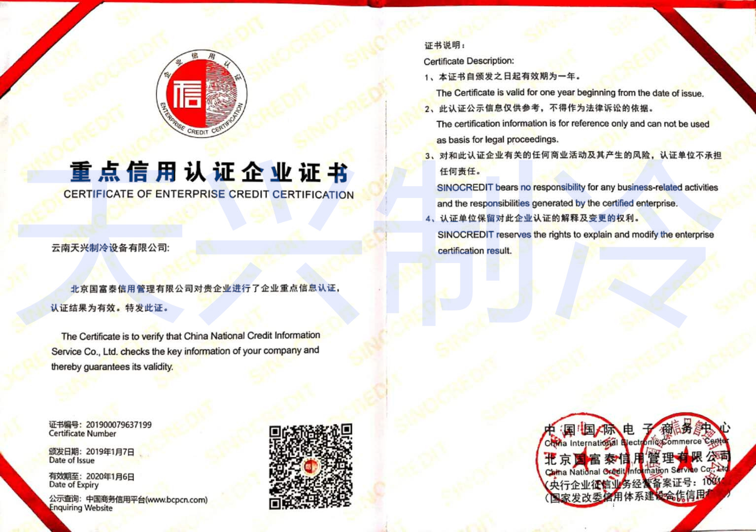 重點信用認證企業(yè)證書